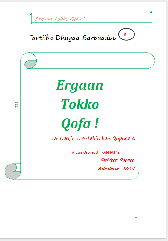 Kitaabni “Ergaan Tokko Qofa!” jedhu dhaamsa jabaa fi hubannoo guddaa kennuuf qophaa’e dha. Kitaabni kun yaada Dr. Naajii I. Arfajiin irraa ka’ee, jireenya keessatti dhugaa fi hubannoo barbaadaniif qajeelfama ta’a.